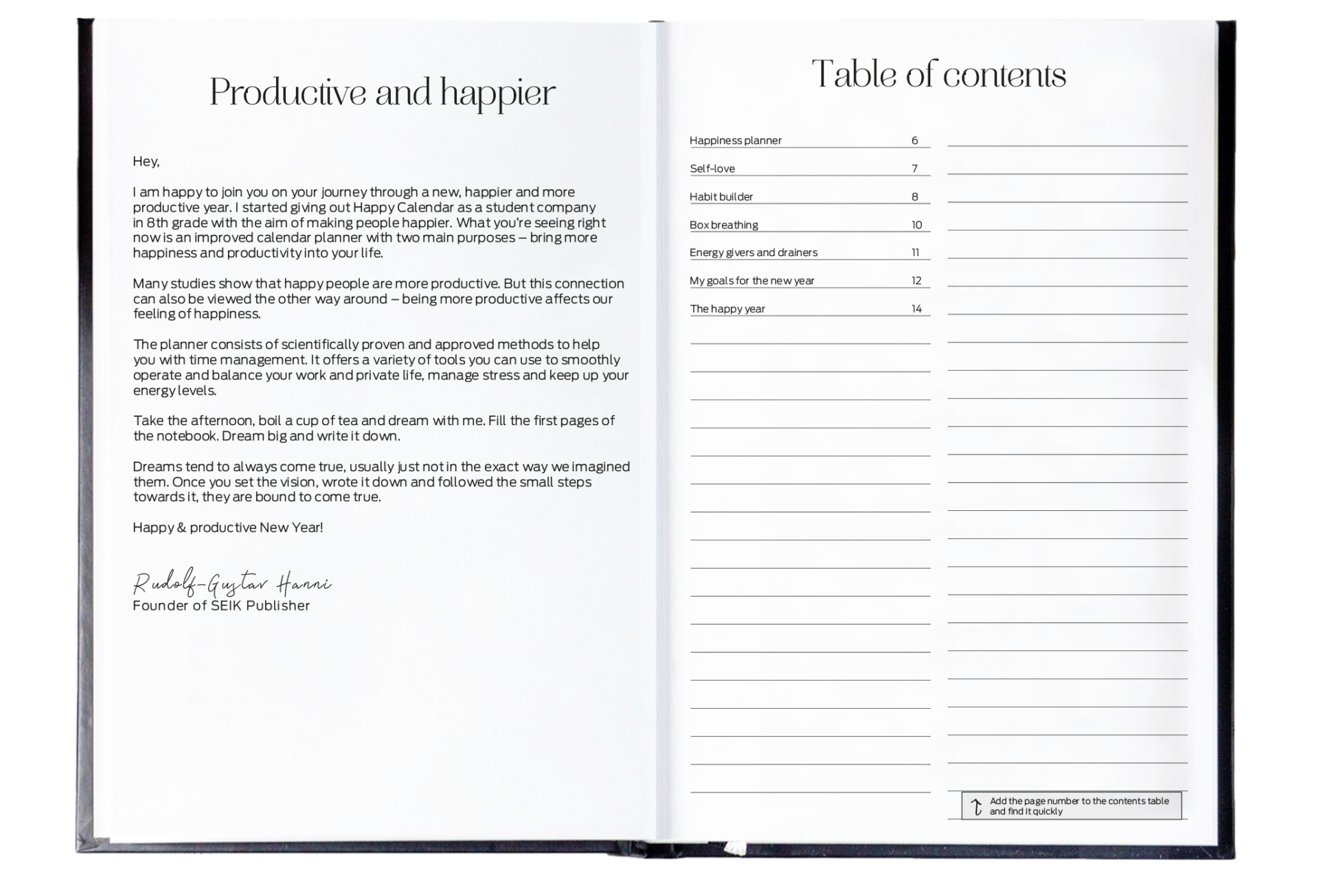 Ako by vyzeral život bez dobrodružstva? Asi dosť fádne, rutinne a zúfalo nudne. Každý však môže pridať do svojho života vzrušenie tým, že urobí malé zmeny prostredníctvom inšpiratívnych citátov, dobrých skutkov a nových dobrodružstiev. Robíme to už od roku 2011, keď sme sa počas štúdia na základnej škole rozhodli, že naším hlavným cieľom je zlepšiť život všetkým. Vydavateľstvo SEIK začalo od študentskej spoločnosti Happy Calendar a prešlo dlhú cestu, ale náš cieľ je stále rovnaký: inšpirovať vás a vašich priateľov!