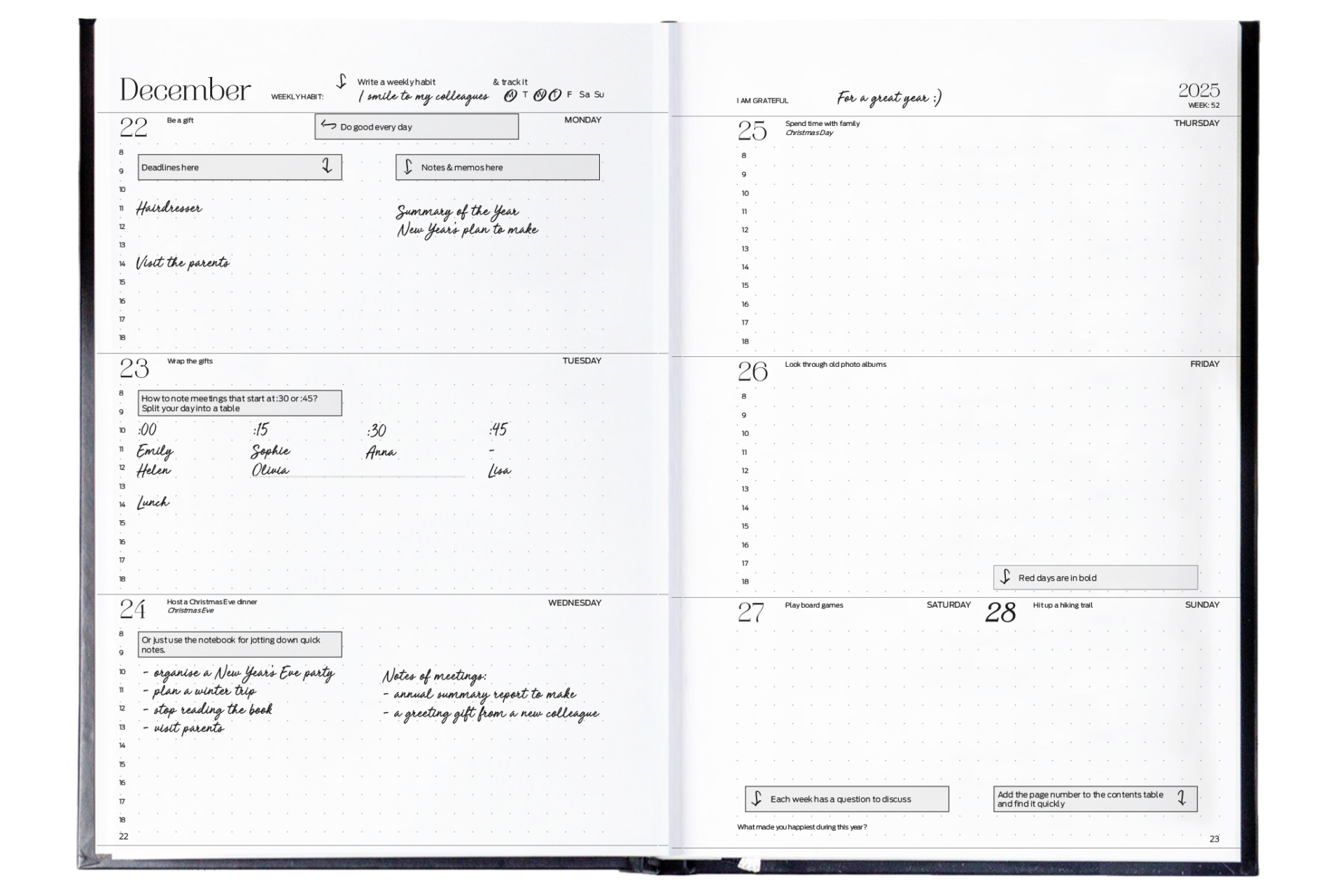 Zapíš si dôležité poznámky do plánovača, pridaj bločky, dôležité papiere vlož do zadného vrecka a vytvor si tak vlastný systém plánovania.