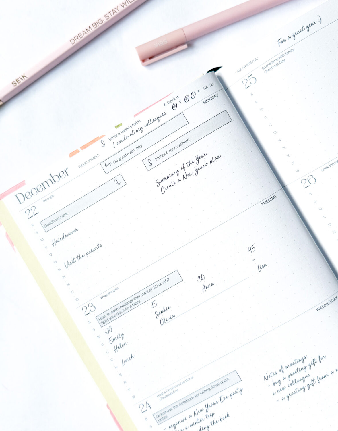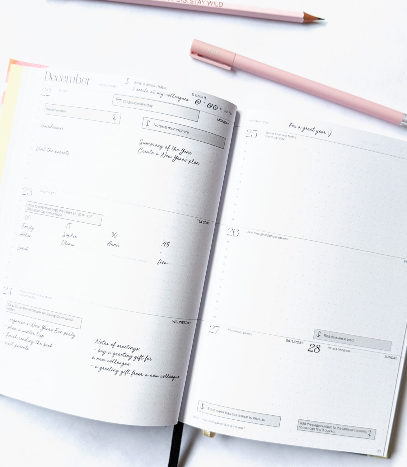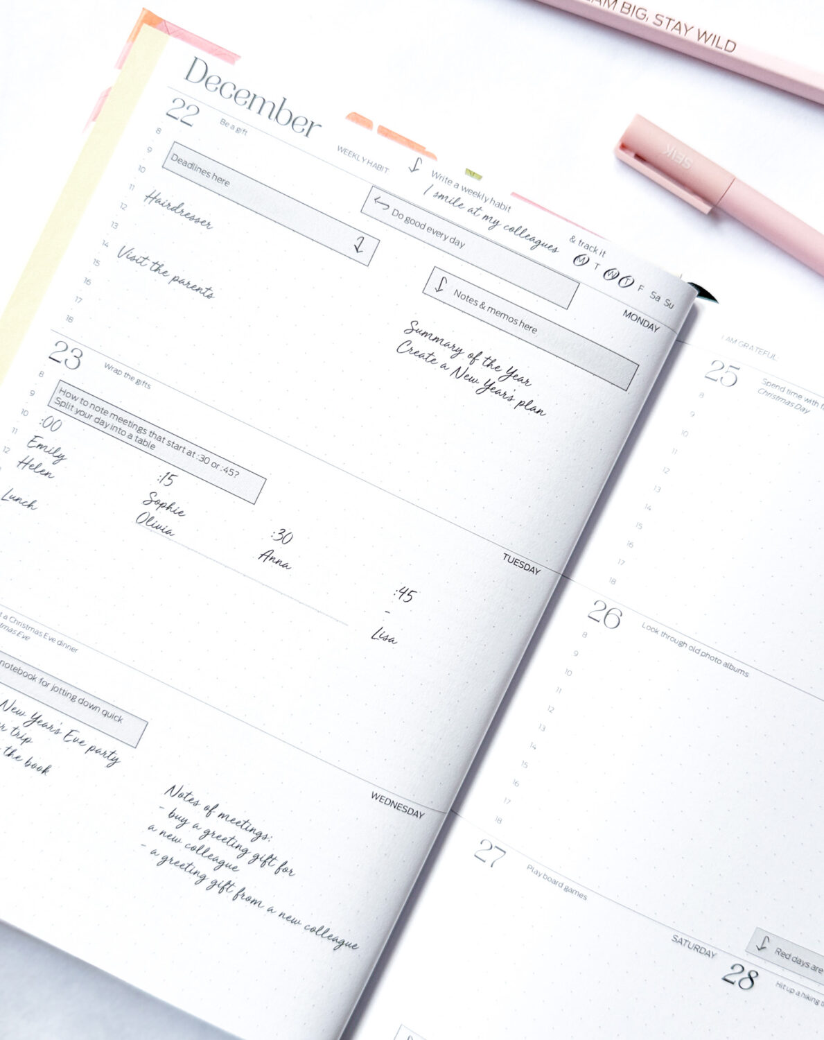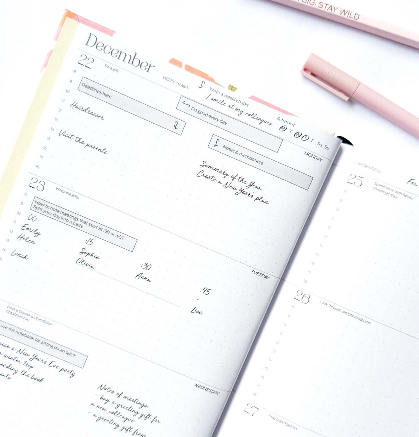 Zapíšte si dôležité poznámky do plánovača, pridajte bločky, dôležité papiere vložte do zadného vrecka a vytvorte si tak vlastný systém plánovania.