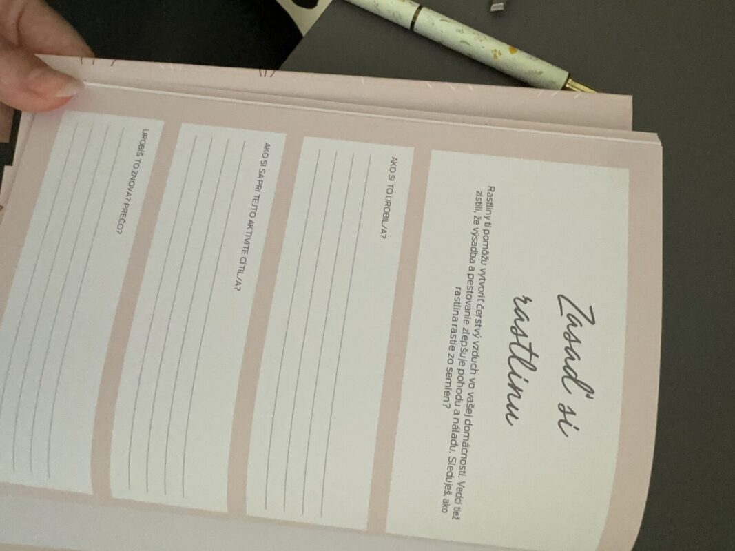 Krásny denník, na ktorý sa každý večer teším. Zvykla som si na dávku sebareflexie a čas sama so sebe. Mám pocit, že mi denník pomáha vnímať maličkosti okolo seba a tiež sa sústrediť na stanovené ciele.